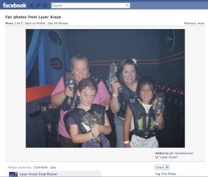 You’ve attracted more than 1,100 Facebook fans in a short period but I imagine this is a small number compared to the total number of Lazer Kraze customers. How much time do you devote to social networking and how to do you measure and assess its value compared to other networking and marketing efforts?