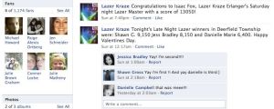 with two locations near Cincinnati in Mason, Ohio and Erlanger, Ky. With a fan page on Facebook, Lazer Kraze communicates directly and quickly with more than 1,100 customers. Visitors’ scores are posted from the previous night. Upcoming events and specials are announced.